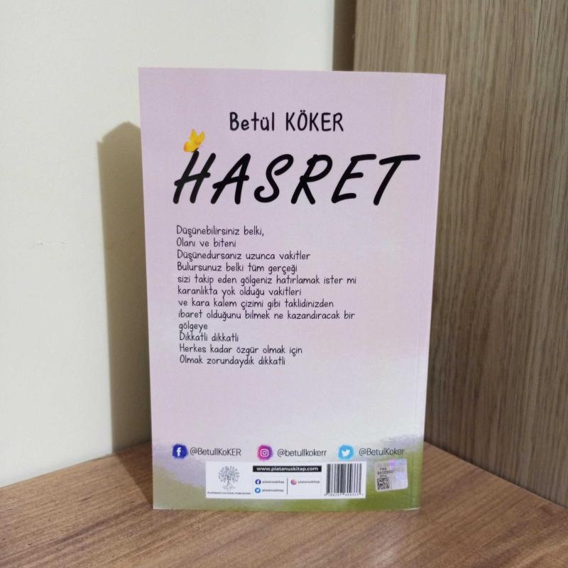 Hasret, Betül Köker tarafından kaleme alınmıştır. Kitap PLATANUS PUBLISHING tarafından 9786257609333 ISBN kodu ile yayınlanmıştır. 287 sayfadır. Hasret adlı eser Türkçe dilindedir.