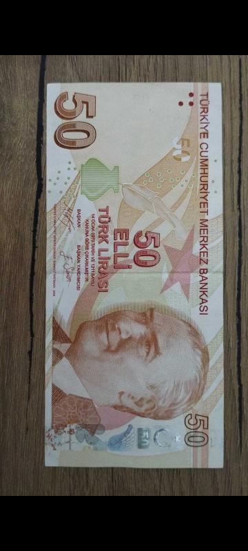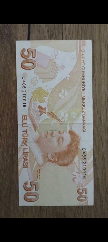 Hatalı basım mürekkep lekesi kayması bulunan 50 tl kağıt para