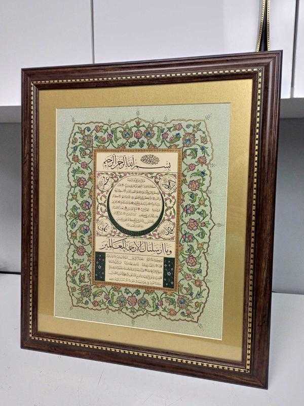 Hattat Ali İhsan SAKAL Ketebeli El Çekme Tezhipli Hat Hilye-i Şerif başlıklı antika/koleksiyon objesi Türkiye menşe’lidir. 2000 ve sonrası dönemine aittir.