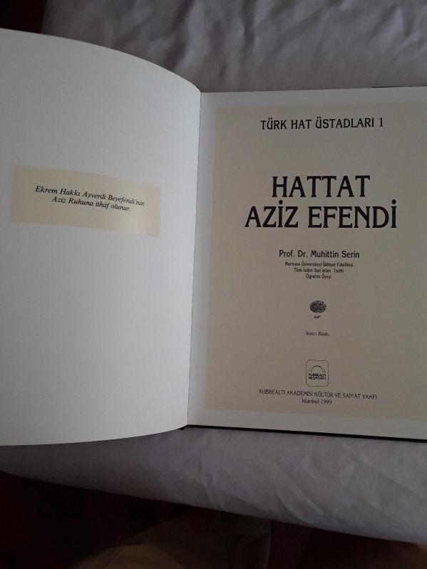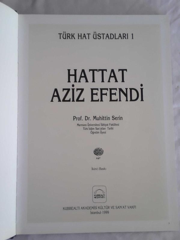 Hattat Aziz efendi, Prof.Dr.Muhittin Serin tarafından kaleme alınmıştır. Kitap 1999 yılında kubbealtı tarafından [istanbul] yayınlanmıştır. Satışta olan kitap, yayınevinin 2. baskısıdır. 122 sayfadır. Hattat Aziz efendi adlı eser Türkçe dilindedir.