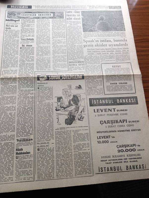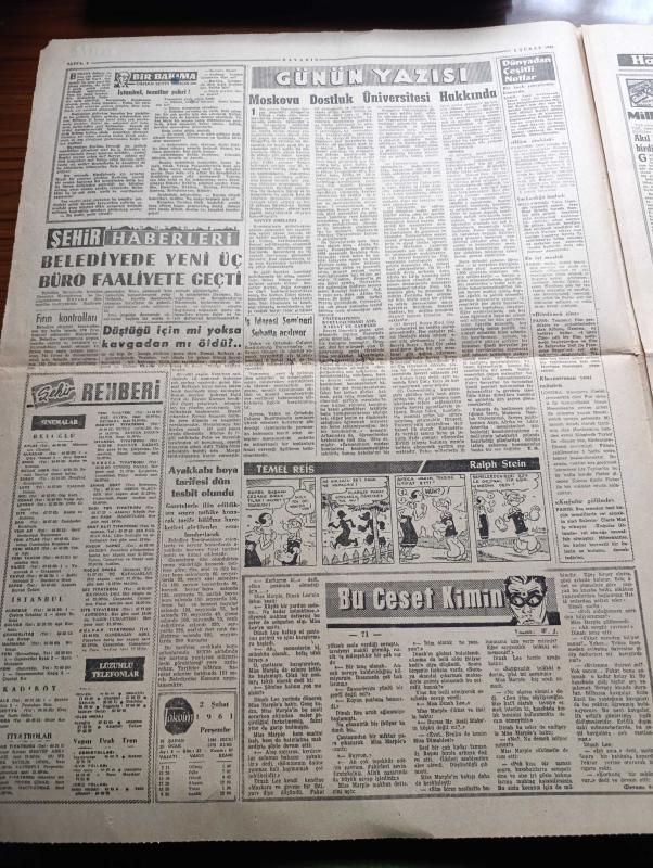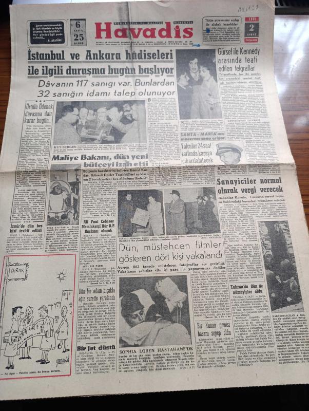 Havadis Gazetesi - 2 Şubat 1961 - Örtülü Ödenek Davasına Dair Karar Bugün - İstanbul Ankara Hadiseleri İle İlgili Duruşma Bugün Başlıyor - Feza Yolcusu 4 Yaşındaki Şempanze - Cemal Gürsel İle Kennedy Arasında Teati Edilen Telgraf - Dün Müstehcen Filmler Gösteren Dört Kişi Yakalandı - Sophia Loren Hastanede - Ali Fuat Cebesoy Memleketçi Hür Demokrat Parti Başkanı Olacak - Bu Ceset Kimin Yazan W. J. Yazı Dizisi - Moskova Dostluk Üniversitesi Hakkında - İstanbul Tezatlar Şehri Yazan Orhan Seyfi Orhon Köşe Yazısı - Fidel Castro Güney Amerika Tek Millet Olacak Dedi - NATO Genel Sekreteri Spaak'ın İstifası Basında Geniş Akisler Uyandırdı - Marilyn Monroe İle Yves Montand'ın Münasebetleri Artık Nihayete Erdi - İsimleri Hadise Yaratan Çiftler - Brigitte Bardot - Hayır Hayır Yazan Pierre Lewis Yazı Dizisi - Komedi Filmleri En Fazla Rağbette - Hakkı Yeten Evet Mali Kriz İçindeyiz Dedi - Refik Selimoğlu Tekrar Mahalli Lige Dönmek Kararındayız - Basketbolda Şampiyon Pazar Akşamı Belli Olacak adlı eser, Kitap > Süreli Yayınlar > Gazeteler > Türkiye > Genel > Günlük kategorisinde İkinci El olarak satıştadır.