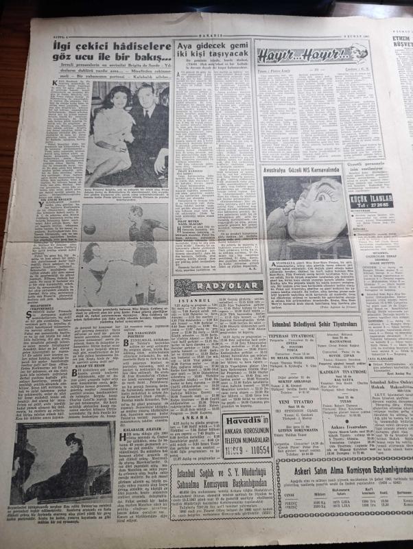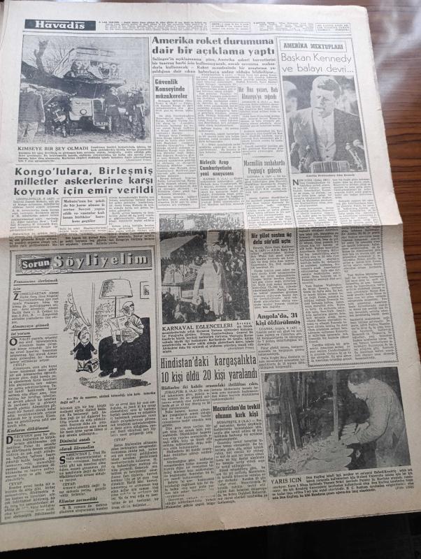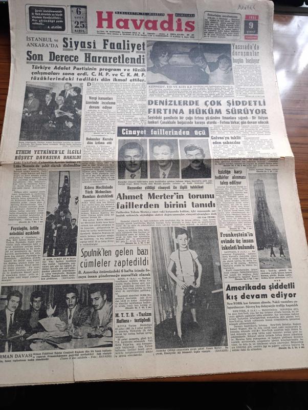 Havadis Gazetesi - 9 Şubat 1961 - İstanbul'da Ve Ankara'da Siyasi Faaliyet Son Derece Hararetlendi - Yassıada'da Duruşmalar Bugün Başlıyor - Ethem Yetkiner'le İlgili Rüşvet Davasına Bakıldı - Turhan Feyzioğlu İstifa Sebebini Açıkladı - Sputnik'ten Gelen Bazı Cümleler Zaptedildi - Kennedy Eşi Ve Kızı İle Fotoğraf - Frankenstein'in Evinde Üç İnsan İskeleti Bulundu - Kıbrıs Meclisinde Türk Mebusları Rumları Destekledi - Bu Ceset Kimin Yazan W. J. Yazı Dizisi - Bahtiyar Şair Yazan Orhan Seyfi Orhon Köşe Yazısı - Temel Reis Çizen Ralph Stein - Birleşik Arap Cumhuriyetinin Yeni Anayasası - Aya Gidecek Gemi İki Kişi Taşıyacak - İstanbul Ankara Radyosu Programı - Futbol Federasyonu Harita Üzerinde Ecnebi Antrenör Arıyor - Fenerbahçe Bugün Çalışacak İstanbulspor Yarın Akşam Ankara'ya Gidecek - Galatasaray Hapoel İçin Antreman Yapıyor - Adana'da 11 12 Şubatta Yaşar Doğu İçin Güreş Müsabakaları Yapılacak adlı eser, Kitap > Süreli Yayınlar > Gazeteler > Türkiye > Genel > Günlük kategorisinde İkinci El olarak satıştadır.