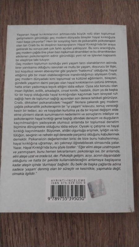 Hayal Kırıklığı, Ian Craib tarafından kaleme alınmıştır. Kitap 2006 yılında Ayrıntı Yayınları tarafından [İstanbul] 9789755395050 ISBN kodu ile yayınlanmıştır. Satışta olan kitap, yayınevinin 1. baskısıdır. Bu baskının çevirisi Aylin Onocak tarafından yapılmıştır. 250 sayfadır. Hayal Kırıklığı adlı eser Türkçe dilindedir.