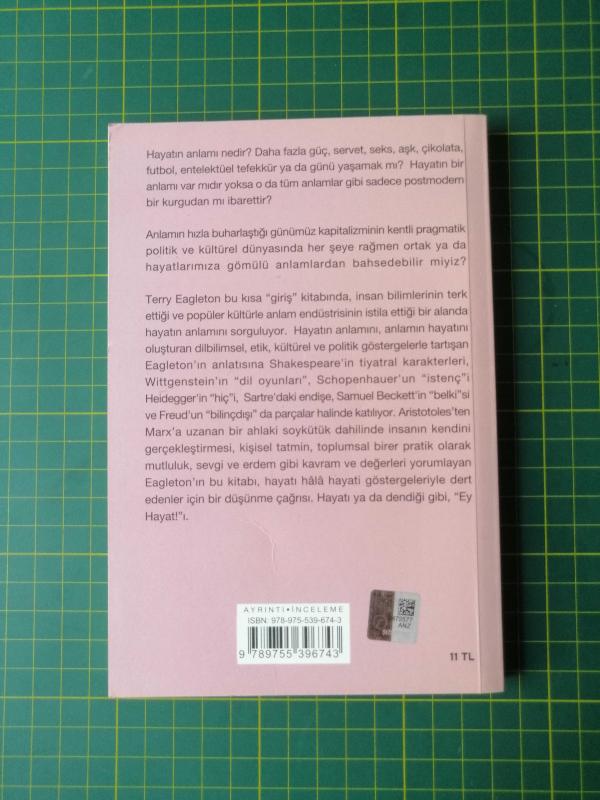 Hayatın Anlamı, Terry Eagleton tarafından kaleme alınmıştır. Kitap 2013 yılında Ayrıntı Yayınları tarafından [İstanbul] 9789755396743 ISBN kodu ile yayınlanmıştır. 139 sayfadır. Hayatın Anlamı adlı eser Türkçe dilindedir.