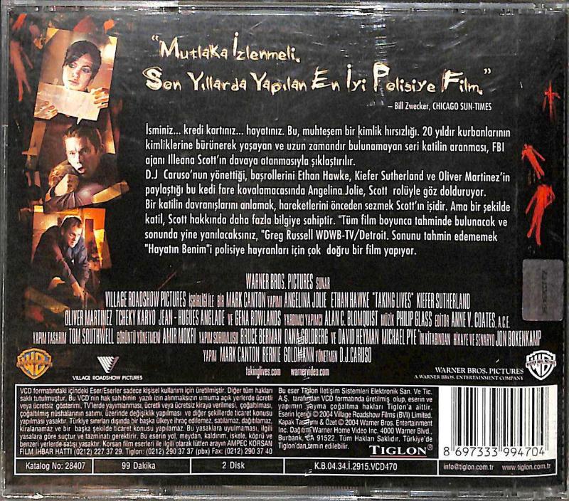 Hayatın Benim – Takıng Lıves Orijinal VCD Film ' Angelina Jolie, Ethan Hawke ' VCD28763, en son 8 gün önce güncellenmiştir.
