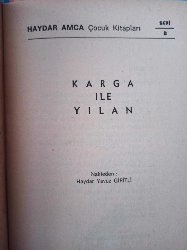 Haydar Amca Çocuk Kitapları - Sayı:9 - Karga İle Yılan - Seri B - Türkçe Kitap - Haydar Yavuz Giritli -, Haydar Yavuz Giritli tarafından kaleme alınmıştır. Haydar Amca Çocuk Kitapları - Sayı:9 - Karga İle Yılan - Seri B - Türkçe Kitap - Haydar Yavuz Giritli - adlı eser Türkçe dilindedir.