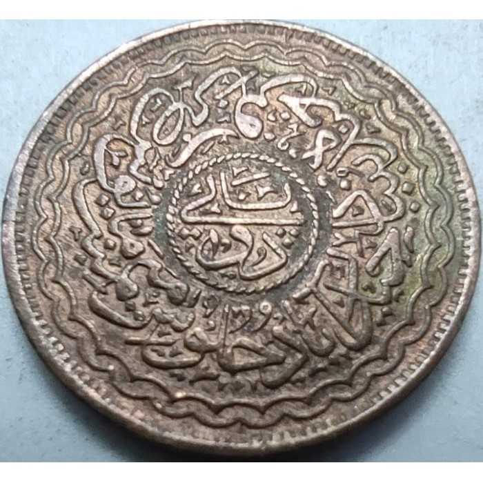 Hindistan’ın sömürge dönemindeki en güçlü prenslik devletlerinden olan Haydarabad Nizamlığı’na ait bu 1930 (H. 1348) yılı 2 Pai, nümismatik ve sembolik açıdan derin anlamlar taşıyan bir parçadır. Son Nizam Mir Osman Ali Han’ın saltanatının 19. yılında (RY 19) basılmıştır. Paranın ön yüzünde yer alan görkemli tuğranın üzerinde, Hz. Muhammed’in isminin ebced değeri olan "92" rakamı bulunmakta, bu da sikkeye manevi bir derinlik katmaktadır. Bronzdan üretilen bu nadide sikkenin arka yüzündeki daire içinde, paranın değerini ifade eden "Du Pai" (İki Pai) yazısı yer alır. Dairenin dışında ise saltanatın 19. yılını simgeleyen ve sizin de belirttiğiniz karakteristik yuvarlak formdaki "19" rakamı okunmaktadır. Charminar mimarisini ve İslam nümismatik geleneğini birleştiren bu parça, 1/96 Rupee değerindeki nadir bir birim olarak hem Hindistan eyalet paraları hem de İslam eserleri koleksiyoncuları için yüksek kondisyonlu ve bilgi dolu bir tarihi objedir.