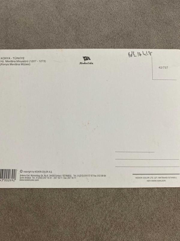 Hazreti Mevlana’nın minyatürü Konya Türkiye Kartpostal 16.5x12 ebatında, en son 9 ay önce güncellenmiştir.