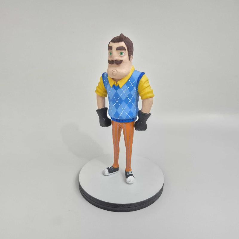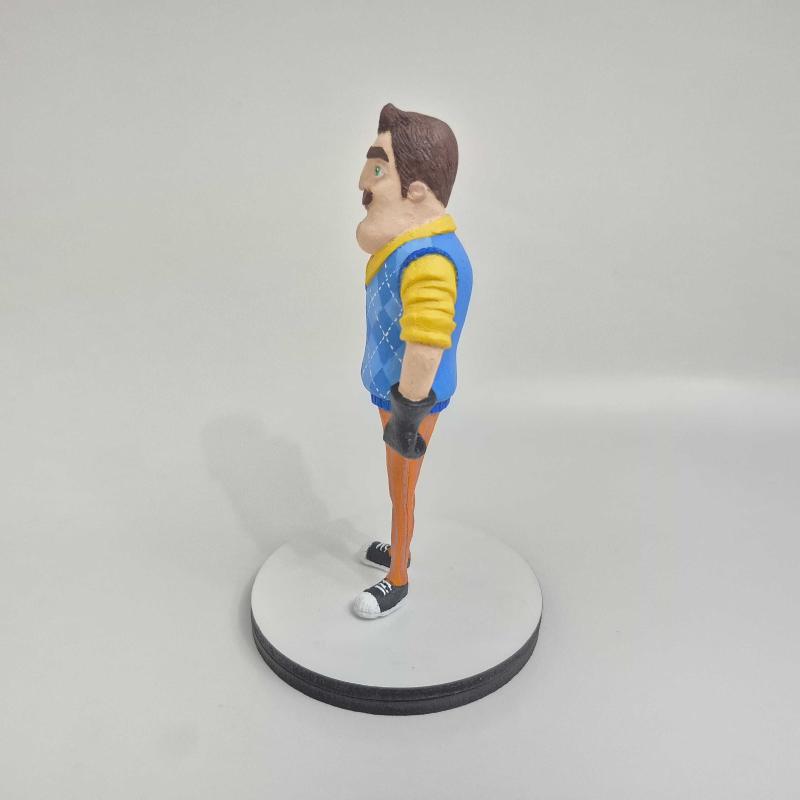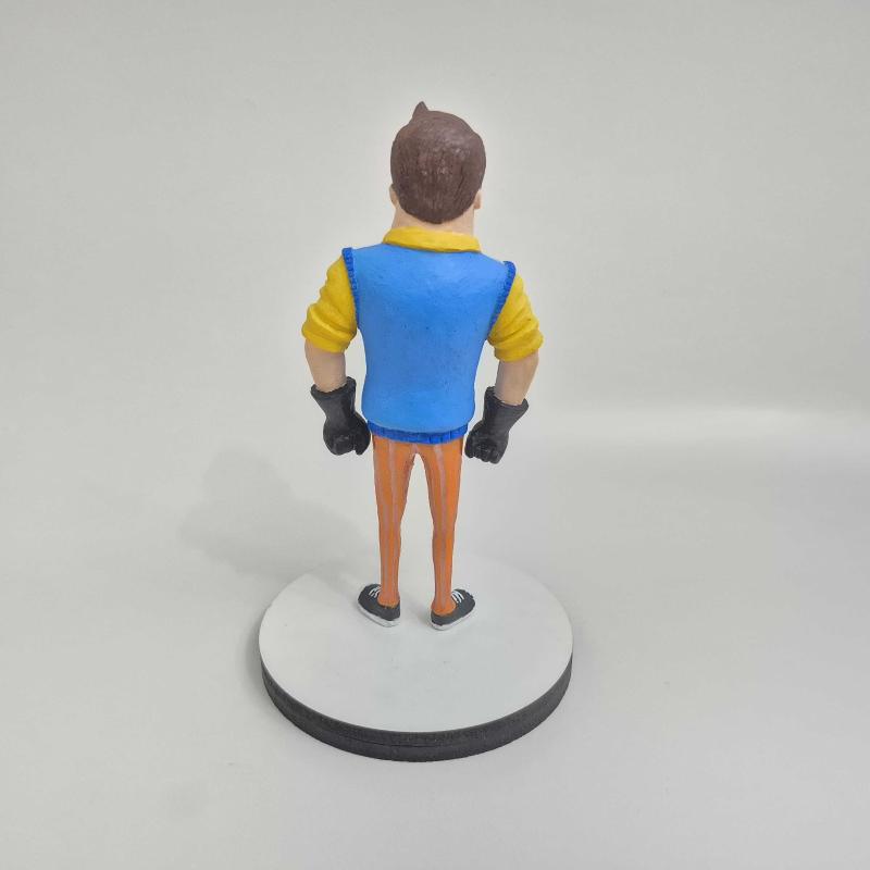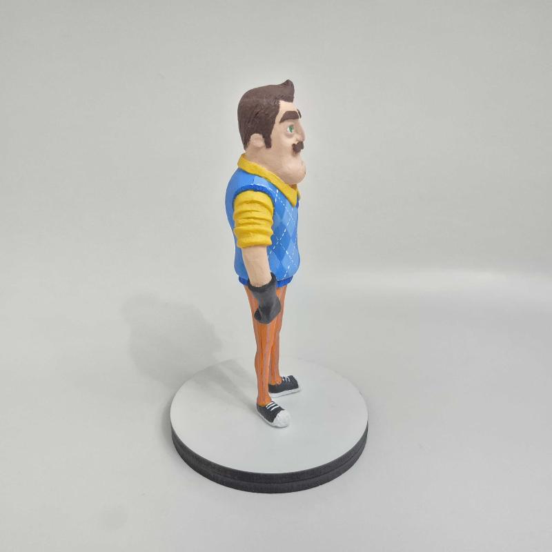 Hello Neighbor oyunundan esinlenilerek hazırlanmış koleksiyonluk bir figürdür. Figürün tasarımı polimer kil ile elde modellenmiş, ardından kalıp alınarak reçine döküm yöntemiyle üretilmiştir. Akrilik boyalar ile renklendirilip verniklenmiştir. Figür son olarak ahşap kaideye sabitlenmiştir. ✔ El yapımı tasarıma dayalı ✔ Koleksiyon ve dekor amaçlı ✔ Oyun temalı sanatsal obje ✔ Atölye üretimi butik çalışma Bu ürün oyuncak değildir. Koleksiyonluk obje olarak tasarlanmıştır. Diğer figür ve tasarımlarımı görmek için profilime göz atabilirsiniz.