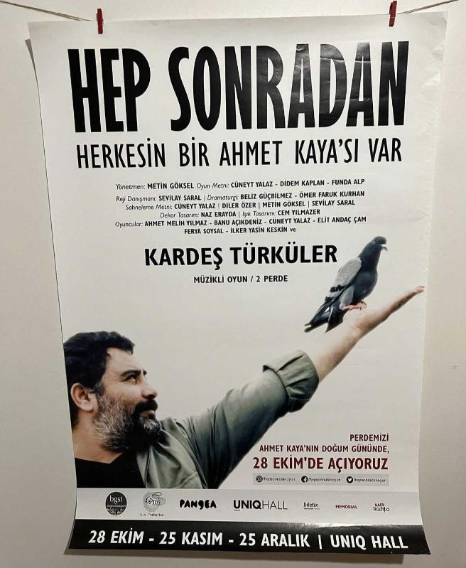 “Hep Sonradan-Kardeş Türküler/Ahmet Kaya” orijinal müzikli tiyatro oyun afişi, en son 1 yıl önce güncellenmiştir.