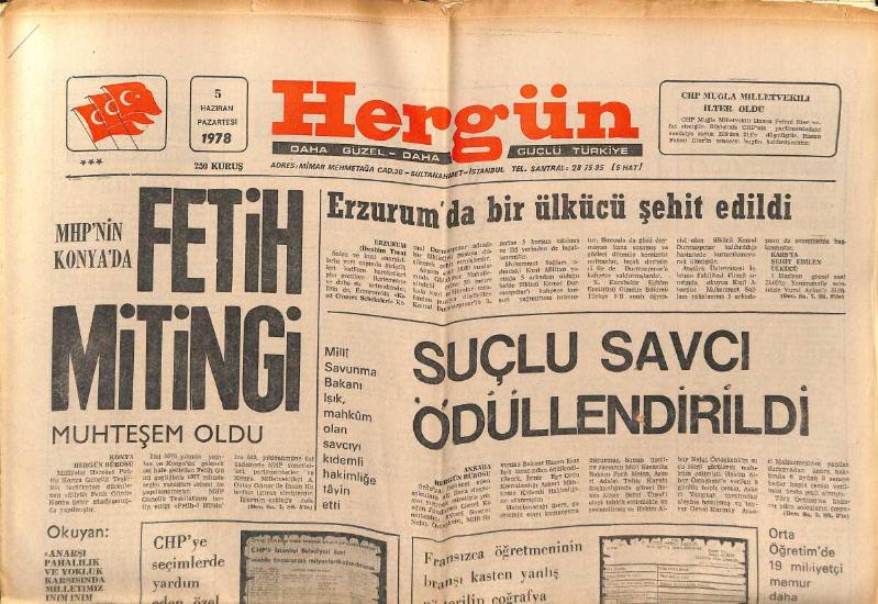 Her Gün Gazetesi 5 Haziran 1978 - MHP'nin Konya'da Fetih Mitingi - Erzurum'da Bir Ülkücü Şehit Edildi GZ152581, en son bir ay önce güncellenmiştir.