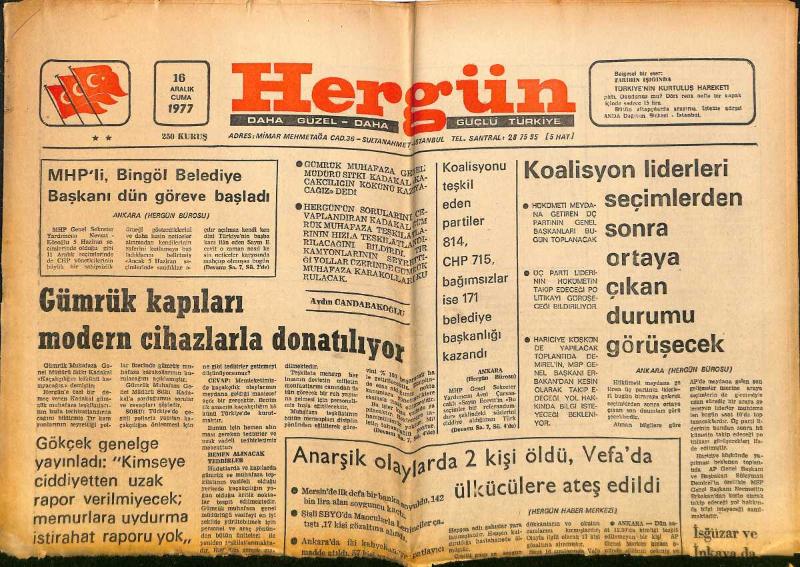 Hergün Gazetesi 16 Aralık 1977 - Malcolm Allison'un Galatasaray'da Sevdiği Önemli Kadın Kim - Gümrük Kapıları Modern Cihazlarla Donatılıyor GZ151759, en son 19 gün önce güncellenmiştir.