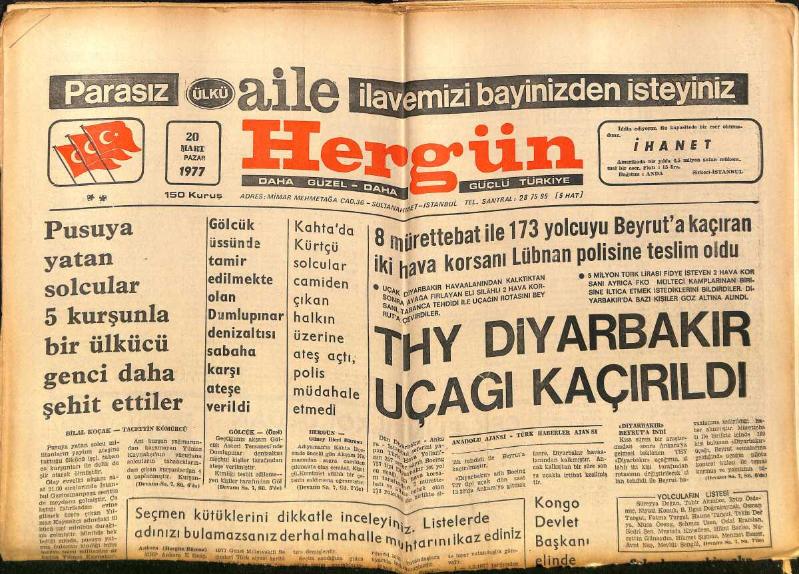 Hergün Gazetesi 20 Mart 1977 - THY Diyarbakır Uçağı Kaçırıldı - Fenerbahçe Mağrur, Galatasaray Mahzun GZ151761 başlıklı ürün, Efemera, Müzik, Sinema > Belge ve Evraklar > Gazete kategorisi altında İkinci El olarak satılmaktadır.