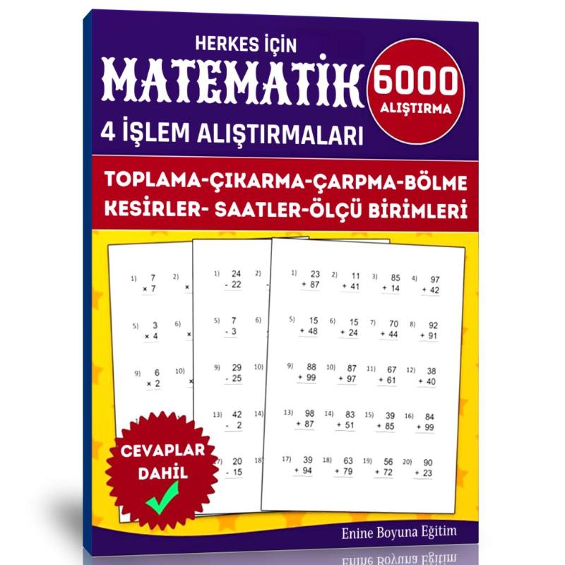 Herkes İçin Matematik Dört İşlem Alıştırmaları SÜPER KİTABI 4 İşlem Öğreten DEV Alıştırmalar Kitabı 6000 Alıştırmayla artık 7’den 77’ye Matematik 4 İşleme hakim olacaksınız. 4 İşlem Matematiğin Temelleridir. Eğer temelleri sağlam atmazsanız üzerine sağlam bina inşa edemezsiniz. Benim çocuğum İlköğretime gidiyor ancak çok fazla 4 işlem alıştırması yapmadığı için Matematiği iyi öğrenemeyecek diye düşünenlerden ben KPSS’ye gireceğim ancak Matematik 4 işlem konusunda zayıfım diyenlere kadar her kesime hitap etmektedir. Toplama Alıştırmaları, Çıkarma Alıştırmaları, Çarpma Alıştırmaları, Bölme Alıştırmaları, Kesirler, Ölçü Birimi CM, Saatleri (Analog) Öğreten dev ansiklopedik kitaptır. Kolay kullanım için spiralli olarak hazırlanmıştır. İşlemleri kitap üzerinde yapacaksınız deftere ihtiyacınız olmayacaktır. Cevapları kitapta yer almaktadır. 320 İşlem (ALIŞTIRMA) Sayfasından oluşmaktadır. 80 İşlem Cevap Anahtarı Sayfasıyla birlikte 400 Sayfadan oluşmaktadır. Kitap sayfaları 120 Gramajlı kağıda dijital baskı yapılmıştır. Profesyonel 4 İşlem öğrenmek isteyenler için sadece alıştırmalar ve cevaplarından oluşmaktadır. Avrupa ve Japonya’da okullarda matematik 4 işlem olarak okutulan kitaptır. İşlemler tamamen bir birinden farklıdır ve yaklaşık 1 yılda tüm komisyon hocalarımız tarafındın hazırlanmıştır. hazırlanmıştır. Herkes İçin Matematik Dört İşlem Alıştırmaları Kitap Seti (2 Kitap) İçeriği: Toplama Çıkarma Çarpma Bölme Kesirler Ölçümler Saatler Cilt Özellikleri : Sarff 450Mic. A4 Şeffaf Kapak (Sert Kapak) Şeffaf kapağın altında Matematik renkli kapağı yer almaktadır. Sert Kapak (Dış Kapak) Özellikleri: 450 Micron Buzlu Şeffaf Kapak (Sert Kapak) Kraft Cilt (Arka Kapak) Özellikleri: Kraft Kağıt ham maddesi odun selülozudür. Suya dayanıklıdır. Kopma mukavemetlidir. Neme dayanıklıdır. Helezon Özellikleri: Sarff 14 mm Pvc Helezon Spiral Şeffaf (4:1) flament çapı 1,8 dır. Kitabın Özellikleri 400 Sayfadan Oluşmaktadır. 6000 Alıştırma yer almaktadır. Kolay Kullanım için spiralli olarak hazırlanmıştır.