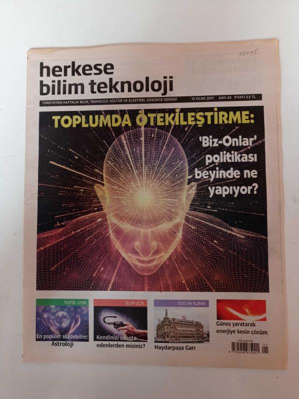 Herkese Bilim Teknoloji Gazetesi - 13 Ocak 2017 - Sayı 42 - Toplumda Ötekilestirme - Biz Onlar Politikası Beyinde Ne Yapıyor - En Popüler Sözdebilim Astroloji - Haydarpaşa Garı - Kendinizi Sabote Edenlerden Misiniz adlı eser, Kitap > Süreli Yayınlar > Gazeteler kategorisinde İkinci El olarak satıştadır.