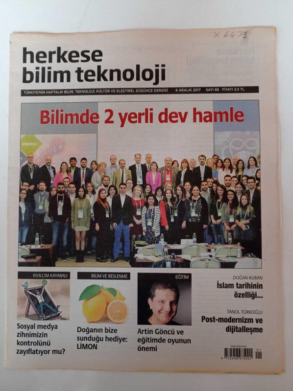 Herkese Bilim Teknoloji Gazetesi - 8 Aralık 2017 - Sayı 89 - Artin Göncü Ve Eğitimde Oyunun Önemi -Bilimde 2 Yerli Dev Hamle - Sosyal Medya Zihnimizin Kontrolünü Zayıflatıyor Mu -İslam Tarihinin Özelliği - Doğanın Bize Sunduğu Hediye Limon - İslam Tarihinin Özelliği - Postmodernizm ve Dijitalleşme adlı eser Türkçe dilindedir.