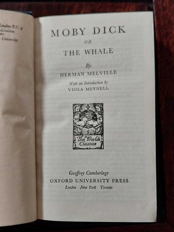 Herman Melville – Moby Dick, Oxford University Press, 1952 Oxford University Press, World’s Classics Series. 1952 basımı, cep boy (15 x 10 cm) özel edisyon. Kalın ciltli, 582 sayfa. Herman Melville’in ölümsüz eseri Moby Dick, koleksiyonluk nitelikte, kusursuz kondisyonda. Bu nadide baskı, hem edebiyat koleksiyoncuları hem de Oxford World Classics serisini tamamlamak isteyenler için ender rastlanan bir örnektir. ⚜️ Kondisyon: Kusursuz