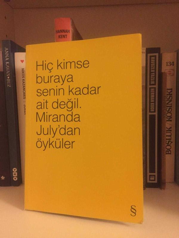 Hiç Kimse Buraya Senin Kadar Ait Değil, Miranda July tarafından kaleme alınmıştır. Kitap 2017 yılında Everest Yayınları tarafından [İstanbul] yayınlanmıştır. Bu baskının çevirisi İnci Asena tarafından yapılmıştır. 175 sayfadır. Hiç Kimse Buraya Senin Kadar Ait Değil adlı eser Türkçe dilindedir.