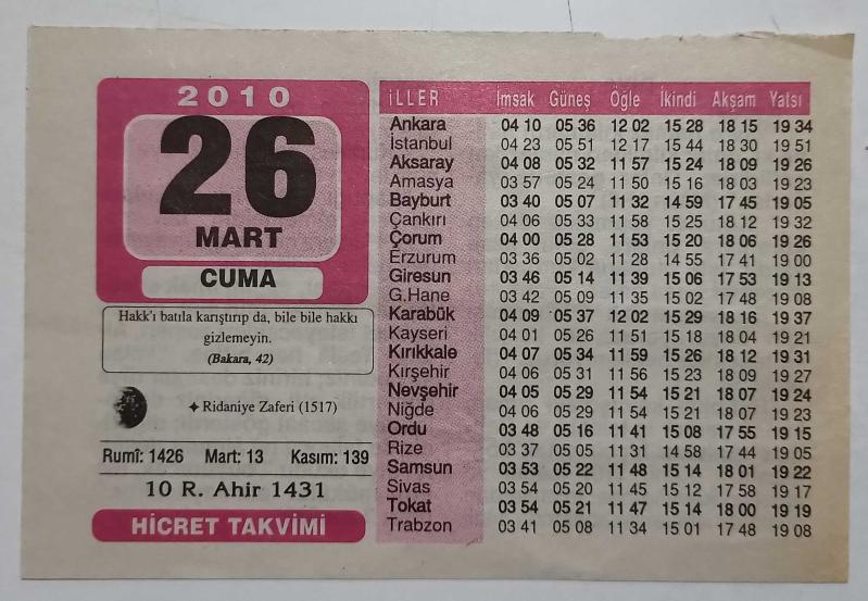 Hicret Takvim Yaprağı 26 Mart 2010, 7 ay önce satışa sunulmuştur.