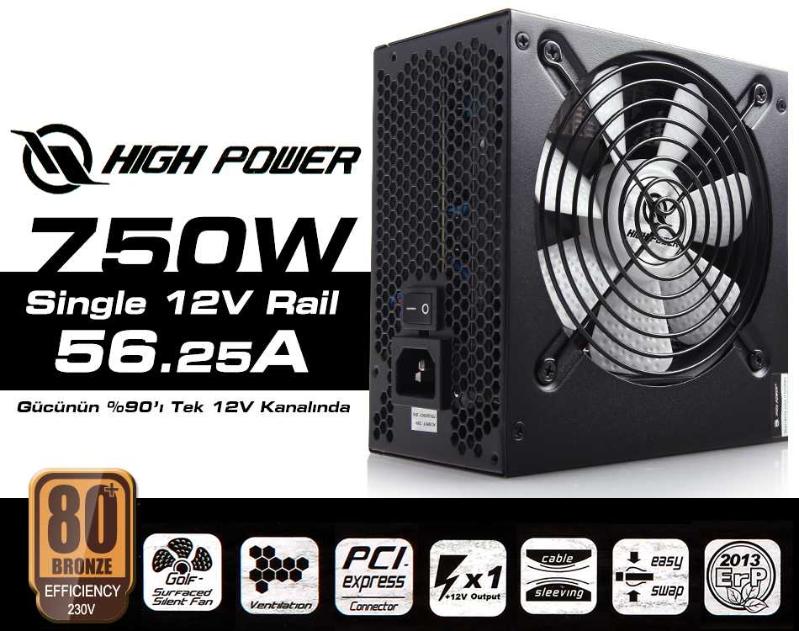 High Power HPG-750BR-H12S 750 W 80+ Bronze 56A@12V Güç Kaynağı, 11 ay önce kitantik’te satışa sunulmuştur.