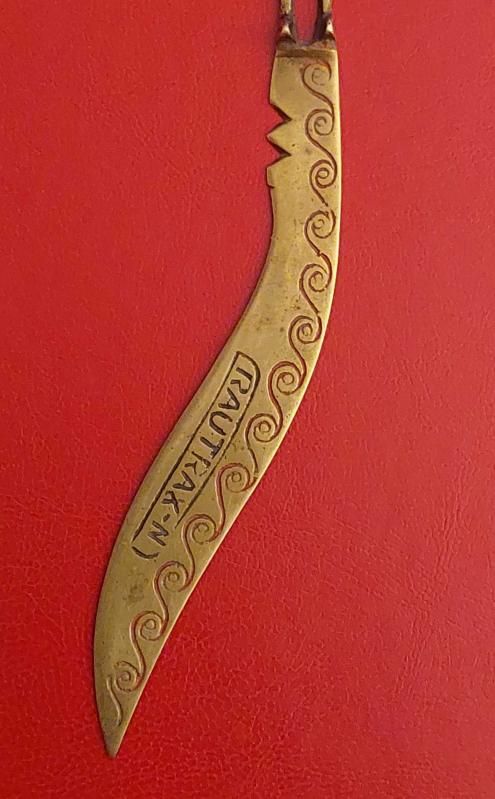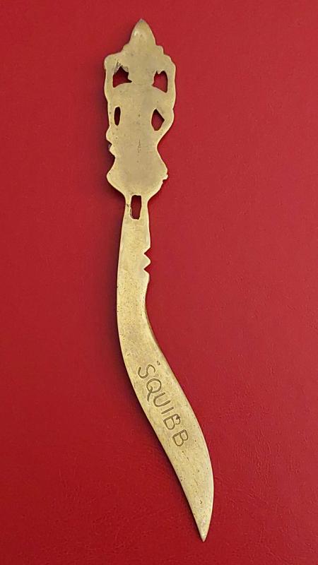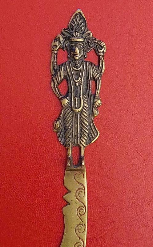 Hindistan, Vintage "Raudixin Hindu Tanrıçası" Temalı Mektup/Zarf Açacağı. 1960-1980'ler. El Yapımı. Pirinç Döküm (4,5x21 cm) Rautrax-N/Suquibb Damgalı. başlıklı antika/koleksiyon objesi Asya menşe’lidir. 1950-1999 arası dönemine aittir.