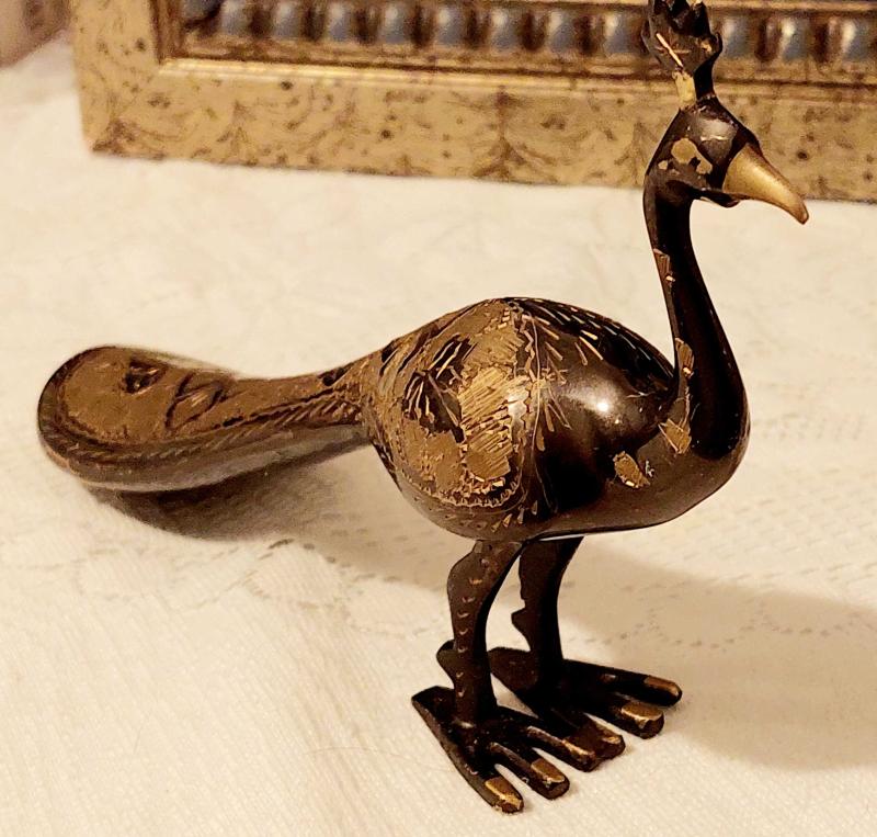 Hindistan, Vintage Tavus Kuşu Heykeli. (Figür) %100 Saf Pirinçten Yapılmış, Parlak Altın Rengi Cilalı ve Güzelce El İşçiliğiyle Üretilmiştir. Mükemmel Detaylı Kuyruk Tüyü (Oyma/İşlemeli) İle Zarafet ve Sanatın Bir Başyapıtı Olan Bu Göz Alıcı Figür, Güzelliği, Refahı ve İyi Şansı Simgeleyen Tavus Kuşunun Zarafetini ve Cazibesini Sergiliyor. Çok İyi Durumda. El Yapımı, 1980'ler. (4,5x13x20 cm)