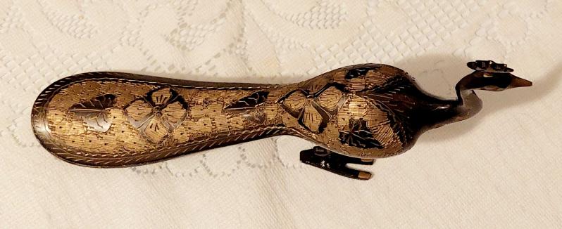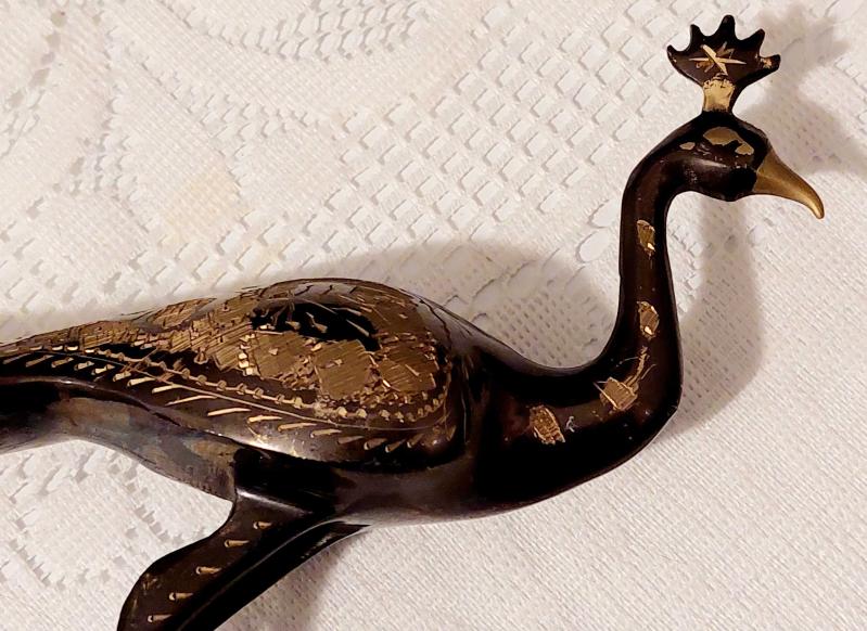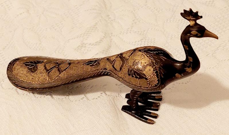 Hindistan, Vintage Tavus Kuşu Heykeli. (Figür) %100 Saf Pirinçten Yapılmış, Parlak Altın Rengi Cilalı ve Güzelce El İşçiliğiyle Üretilmiştir. Mükemmel Detaylı Kuyruk Tüyü (Oyma/İşlemeli) İle Zarafet ve Sanatın Bir Başyapıtı Olan Bu Göz Alıcı Figür, Güzelliği, Refahı ve İyi Şansı Simgeleyen Tavus Kuşunun Zarafetini ve Cazibesini Sergiliyor. Çok İyi Durumda. El Yapımı, 1980'ler. (4,5x13x20 cm) başlıklı antika/koleksiyon objesi Asya menşe’lidir. 1980-1999 arası dönemine aittir.