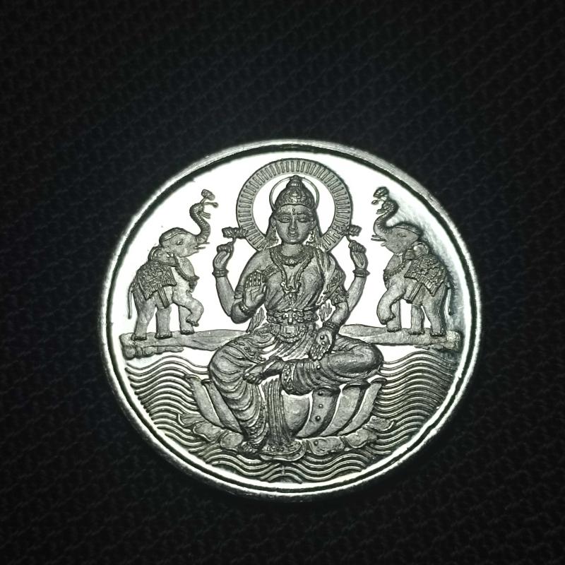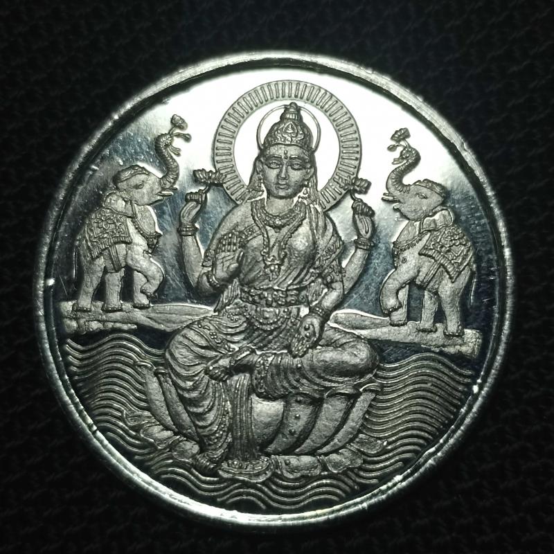 Tanrıça Lakshmi temalı gümüş madalyon 10 gram / 999 Ayar Gümüş (Ürünün materyal tespiti sarrafta materyal analiz makinesiyle yapılmıştır.) Görseldeki ürün