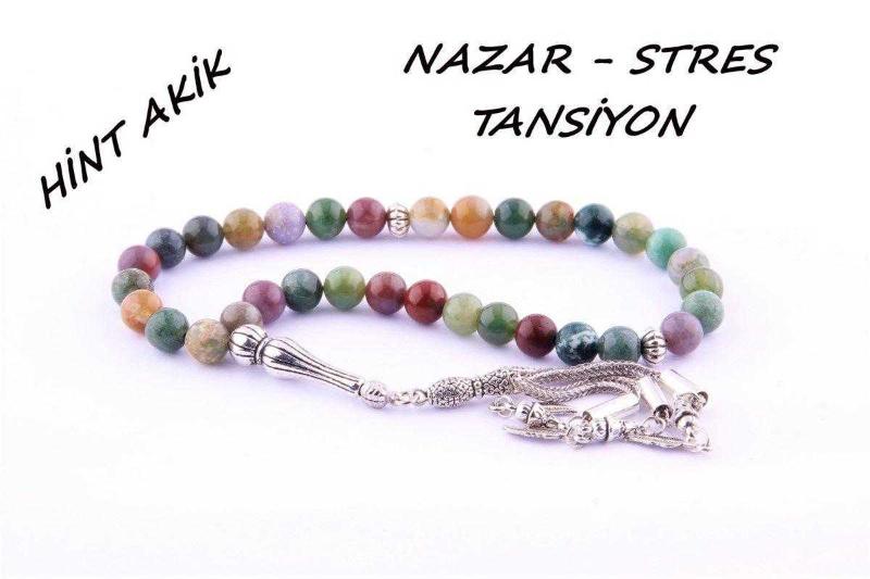 Taş ebatı:8 mm Metal Püskül ve imame Hint Akiği özellikleri Nazara karşı koruma sağlar. Strese iyi gelir. Tansiyonu dengeler. Hamilelikte anne ve bebek sağlığı için önemlidir.