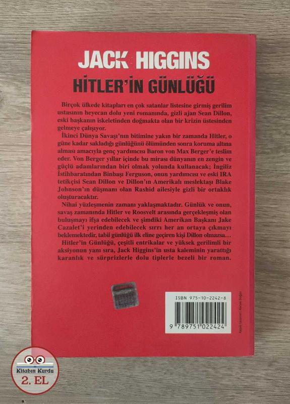 KİTAP 2.EL'DİR Kondisyon: 10 / 10 ---------------------------------------- Birçok ülkede kitapları en çok satanlar listesine girmiş gerilim ustasının heyecan dolu yeni romanında, gizli ajan Sean Dillon, eski başkanın iskeletinden doğmakta olan bir krizin üstesinden gelmeye çalışıyor. İkinci Dünya Savaşı'nın bitimine yakın bir zamanda Hitler, o güne kadar sakladığı günlüğünü ölümünden sonra koruma altına alması amacıyla genç yardımcısı Baron von Max Berger'e teslim eder. Von Berger yıllar içinde bu mirası dünyanın en zengin ve güçlü adamlarından biri olmak yolunda kullanacak; İngiliz İstihbaratından Binbaşı Ferguson, onun yardımcısı ve eski IRA tetikçisi Sean Dillon ve Dillon'ın Amerikalı meslektaşı Blake Johnson'ın düşmanı olan Rashid ailesiyle gizli bir ortaklık oluşturacaktır. Nihai yüzleşmenin zamanı yaklaşmaktadır. Günlük ve onun, savaş zamanında Hitler ve Roosvelt arasında gerçekleşmiş olan buluşmayı ifşa edebilecek ve şimdiki Amerikan Başkanı Jake Cazalet'i yerinden edebilecek sırrı her an ortaya çıkmayı beklemektedir, tabii günlüğü ilk eline geçiren kişi Dillon olmazsa... Hitler'in Günlüğü, çeşitli entrikalar ve yüksek gerilimli bir aksiyonun yanı sıra, Jack Higgins'in usta kaleminin yarattığı karanlık ve sürprizlerle dolu tinlerle bezeli bir roman.