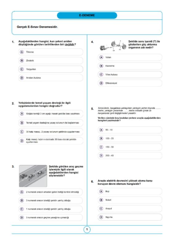 Hızlı Ehliyet Sınav Seti – Yüzde Yüz Kazanacaksınız! Ehliyet sınavına hazırlanmak artık çok kolay, çok hızlı ve çok eğlenceli! Bu set, sizi sınav stresinden kurtarıp garanti başarıya ulaştırmak için özel olarak tasarlandı. Set İçeriği: 6 Yaprak Test Spiralli Kitap: Konulara göre düzenlenmiş, yeni sınav sistemine uygun yüzlerce özgün soru. Spiral tasarımı sayesinde kolay kullanım, rahat çözüm! 2 Süper Ötesi Deneme: Gerçek sınav formatında hazırlanmış, zaman yönetimi ve hız pratiği için birebir. 1 Trafik İşaretleri Renkli PANOSU: A3 Boyutlarında Trafik İşaretlerinin verildiği bir poster Karekodla Cevaplar: Her testin sonunda QR kodu okutarak doğru cevaplara ve açıklamalara anında ulaşabilirsiniz! 1 Sınav Kalemi: Hızlı, net ve kaydırma yapmadan işaretleme için ideal. 1 Şeffaf Dosya: Tüm materyallerinizi düzenli ve temiz tutmanız için özel dosyasında. Neden Bu Seti Almalısınız? • Son 5 yılın çıkmış sorularına göre hazırlanmıştır. • Her sayfası profesyonel eğitmenler tarafından özenle tasarlanmıştır. • Türkiye genelinde binlerce adayın tercih ettiği ve başarı oranı %100’e yakın olan sistemle hazırlanmıştır. • İster evde, ister kursta, ister yolda… her yerde pratik yapabilirsiniz. Bu setle hedefiniz: “Sınavı geçmek değil, tam puan almak!” Siz sadece başlayın, Hızlı Ehliyet Sınav Seti sizi hedefe ulaştıracak! Stoklarla sınırlı! Bugün sipariş verin, ehliyet yolculuğunuza emin adımlarla başlayın!