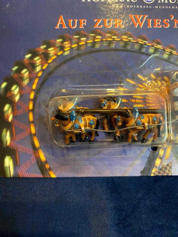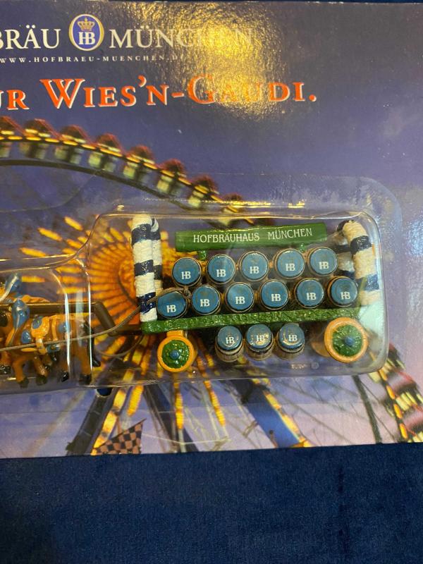 Hofbräu München temalı, Oktoberfest konseptli özel üretim mini figür ve bira fıçısı taşıma arabası, orijinal blister ambalajında ve koleksiyonluk kondisyondadır. Alman bira kültürünü ve Wiesn eğlencesini yansıtan bu nadir parça, diecast ve minyatür koleksiyoncuları ile vitrinlik ürün arayanlar için ideal bir seçenek