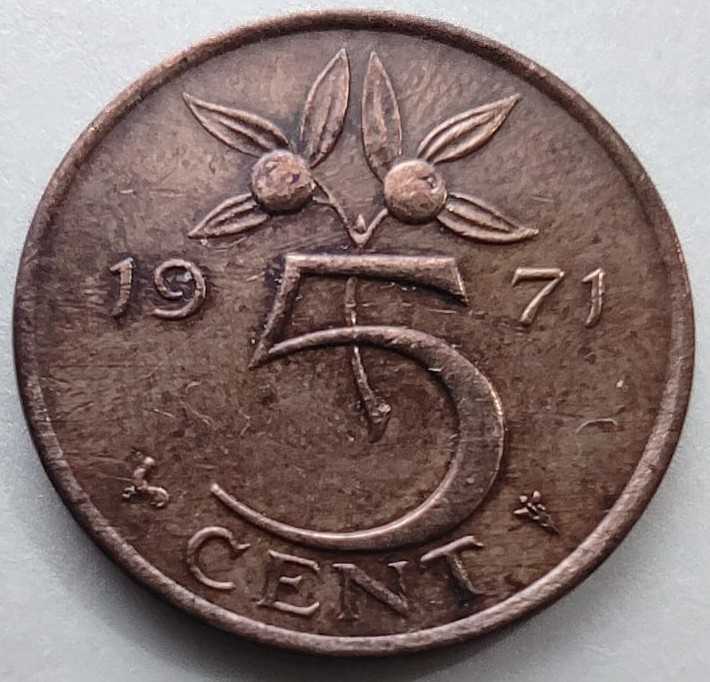 Hollanda'da "Stuiver" olarak adlandırılan bu 5 Cent'lik parça, ülkenin en köklü madeni para geleneklerinden biridir. 1971 yılı baskısı, Kraliçe Juliana döneminin karakteristik ve sağlam nümismatik örneklerinden biridir.