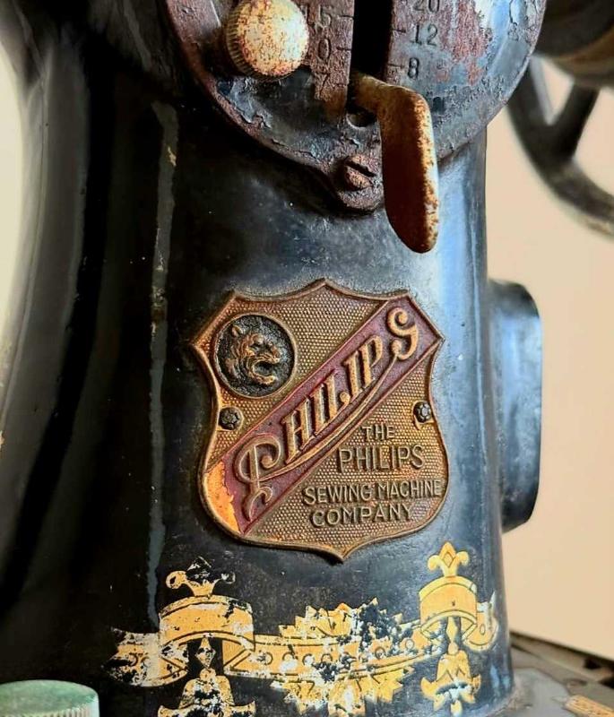 Hollanda, Philips Dikiş Makinesi Arması. "Philips de Luxe-The Philips Sewing Machine Company." Dikiş Makinesi Üzerinde Gösterişli Altın ve Kırmızı-Lacivert Renkte Baskı Teknikleriyle Uygulanan Aslan Logosu Bulunan Orijinal Etiketidir. Pirinç Üzeri Renkli Mineli. 1930. (42×42 mm) Nadir Çıkar.