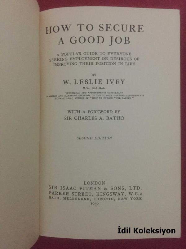 How To Secure A Good Job - W. Leslie Ivey - Sir Isaac Pitman & Sons - İngilizce Kitap (İyi Bir İş Nasıl Güvenceye Alınır?) adlı eser, Kitap > İş ve Ekonomi kategorisinde İkinci El olarak satıştadır.