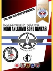 YAYININ AMACI Kitabın amacı, Milli Savunma Bakanlığının ihtiyaç duyduğu hukuk sınıfı subay adaylarının seçimleri, yetiştirilmeleri, staj süreleri, görev ve sorumlulukları, göreve bağlılık dereceleri, sicil işlemleri, özlük hakları, başarılı olamayanlar ile niteliklerini kaybedenler hakkında yapılacak işlemlerle ilgili esas ve usuller Kara Kuvvetleri Komutanlığı, Hava Kuvvetleri Komutanlığı, Deniz Kuvvetleri Komutanlığı’nda çeşitli birimlerinde görev yapmak isteyen personelin gireceği sınava ilişkin bilgileri kısa ve öz şekilde öğrenirken, sorularla pratik yaparak çok zaman harcamadan sınavlarına hazır olmalarını sağlamaktır. Sınava Hazırlık amacıyla Konu Anlatımı ile Soru Bankası ve Deneme Testleri kitabıyla sınava hazırlanan adayın başka bir kaynağa ihtiyaç duymaması için hazırlanmıştır. YAYININ HİTAP ETTİĞİ KİTLE Kara Kuvvetleri Komutanlığı, Hava Kuvvetleri Komutanlığı, Deniz Kuvvetleri Komutanlığı teşkilatında görevli subay ile bu sınava girecek hukuk fakültesi okumuş personel.