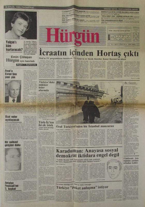 Hürgün Gazetesi - 16 Eylül 1985 - Yıl.1 Sayı.1 - İsmailağa İran Gibi (Doğum Günü) Tüm gazetelerimiz eksiksiz ve tamdır. Gazetenin tamamı gönderilir.