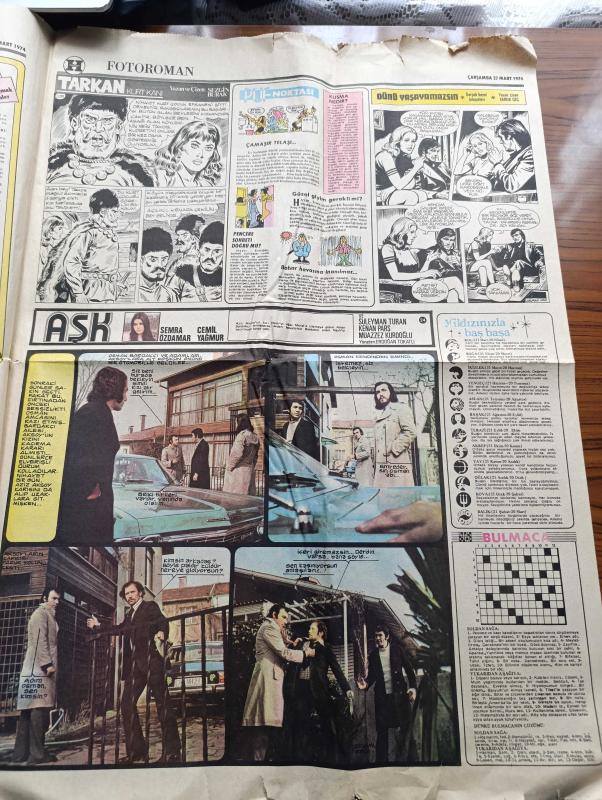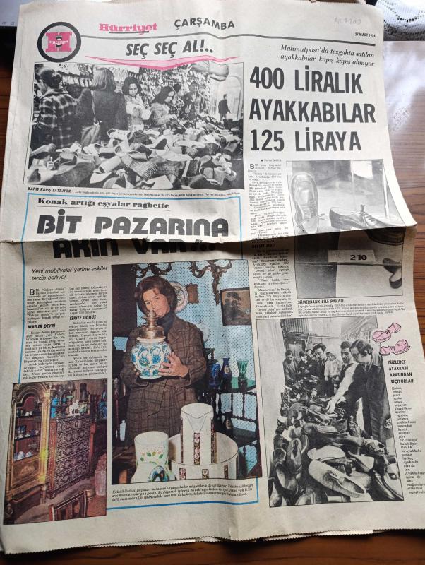 Hürriyet Çarşamba Gazetesi - 27 Mart 1974 - S.S.K Sorular Cevaplar - Mahmutpaşa'da Tezgahta Satılan Ayakkabılar Kapış Kapış Alınıyor - 400 Liralık Ayakkabılar 125 Liraya - Sümerbank Bile Pahalı - Konak Artığı Eşyalar Rağbette Bit Pazarına Akın Var - Kuledibindeki Bitpazarı Sabahtan Akşama Kadar Müşterilerle Dolup Taşıyor Fotoğraf - Serbest Kürsü Yöneten Tahsin Öztin - Hayat Arkadaşı Köşesi - Bizimkiler Çizgi Roman - Fatoş Çizgi Roman - Güngörmüşler Çizgi Roman - Dedektif Nik'in Maceraları Çizgi Roman - Türk Kelebeği Anlatan Mehmet Ali Kayan Yazan Hasan İzzettin Dinamo Yazı Dizisi - Floris Yazan Jacqueline Monsigny Yazı Dizisi - Tarkan Kurt Kanı Yazan Ve Çizen Sezgin Burak - Aşk Foto Roman Başrolde Semra Özdamar Ve Cemil Yağmur Ve Süleyman Turan Kenan Pars ve Muazzez Kurdoğlu - Dünü Yaşayamazsın Yazan Çizen Faruk Geç - Aktör Jean Gabin Sophia Loren İle Çevirdiği Filmden Sonra İnzivaya Çekiliyor Fotoğraf - Sefiller'in Dev Oyuncusu - Kadınların En Gözde Kumaşı Fitilli Kadife Moda Oldu, Sedat Simavi tarafından kaleme alınmıştır. Hürriyet Çarşamba Gazetesi - 27 Mart 1974 - S.S.K Sorular Cevaplar - Mahmutpaşa'da Tezgahta Satılan Ayakkabılar Kapış Kapış Alınıyor - 400 Liralık Ayakkabılar 125 Liraya - Sümerbank Bile Pahalı - Konak Artığı Eşyalar Rağbette Bit Pazarına Akın Var - Kuledibindeki Bitpazarı Sabahtan Akşama Kadar Müşterilerle Dolup Taşıyor Fotoğraf - Serbest Kürsü Yöneten Tahsin Öztin - Hayat Arkadaşı Köşesi - Bizimkiler Çizgi Roman - Fatoş Çizgi Roman - Güngörmüşler Çizgi Roman - Dedektif Nik'in Maceraları Çizgi Roman - Türk Kelebeği Anlatan Mehmet Ali Kayan Yazan Hasan İzzettin Dinamo Yazı Dizisi - Floris Yazan Jacqueline Monsigny Yazı Dizisi - Tarkan Kurt Kanı Yazan Ve Çizen Sezgin Burak - Aşk Foto Roman Başrolde Semra Özdamar Ve Cemil Yağmur Ve Süleyman Turan Kenan Pars ve Muazzez Kurdoğlu - Dünü Yaşayamazsın Yazan Çizen Faruk Geç - Aktör Jean Gabin Sophia Loren İle Çevirdiği Filmden Sonra İnzivaya Çekiliyor Fotoğraf - Sefiller'in Dev Oyuncusu - Kadınların En Gözde Kumaşı Fitilli Kadife Moda Oldu adlı eser Türkçe dilindedir.