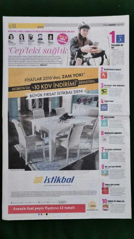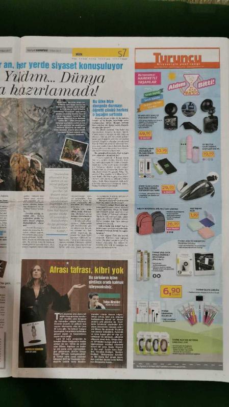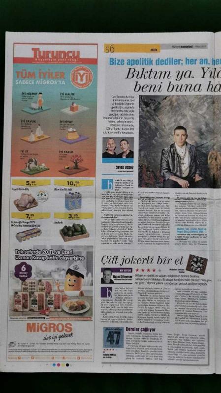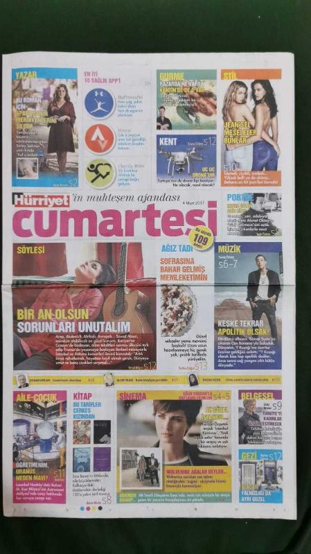 Kitap 2017 yılında yayınlanmıştır. 14 sayfadır. Hürriyet Cumartesi Gazete 4 Mart Bir An Olsun Sorunları Unutalım,Souad Massi,Ah Güzel İstanbul,Ferzan Özpetek,Seray Şahiner,Keşke Tekrar Apolitik Olsak,Can Bonomo,Gizli Çekmece'deki Bohemler,Ahmet Oktay,Kadın Varsa İmkansız Yoktur Yapabilirsin,Güliz Arslan,Tuluhan Tekelioğlu,Her Cinsten Jean'ler,Miranda Kerr,Milka Karaağaçlı,Mevsimsel Hatta Haftasal Bir Mutfak Kantin, Vedat Milor,Şemsa Denizsel adlı eser Türkçe dilindedir.