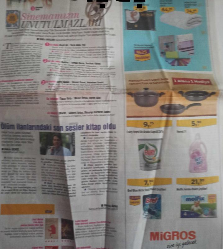 Hürriyet Cumartesi Haftalık Aktüalite, Sinema ve Magazin Gazetesi - 22 Ekim 2016 - Sinemamızın unutulmazları - Hakan Tartan - Ölüm ilanlarındaki son sesler kitap oldu - Uğur Vardan - Seni düşünmek güzel şey - 'Rüya' bütün çektiğimiz - Uğur Vardan'la haftanın filmleri - Diğer seçenekler - 'Oyunlarla yaşayanlar' a - Gençlere özel bir Romeo & Juliet - Korku Denen Şeyi Bilmiyorum - Aslı Barış - Demir Adamlar Antalya'da kapışıyor - Ceren Şehirlioğlu - Sezonun en sürükleyici aşkları - Gazete tam değildir sadece 4 sayfası mevcuttur Yıpranma, sararmalar, kupon kesiği ve yırtılmalar zamana bağlı olarak görülebilir