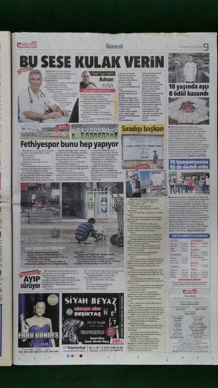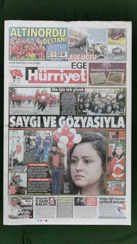 Kitap 2016 yılında yayınlanmıştır. 10 sayfadır. Hürriyet Ege Gazete 11 Kasım 2016 Saygı Ve Gözyaşıyla,Aliağa-Çiğli Arasında Seferler Başladı,Mehmet Sepil,Cüneyt Biçer,Abdülkadir Özgen,Hüseyin Tok,Enver Ataçocuğu,Leo Schwechlen,Karşıyaka'da Top Yönetimde,Ebru Gündeş,Aziz Kocaoğlu,Al PAcino,Martin Sheen,Sissy Spacek,Paul Newman,Seri İlanlar,Önce Sağlık İlanları,Fiat - Özdilek - Vitello Reklamları adlı eser Türkçe dilindedir.