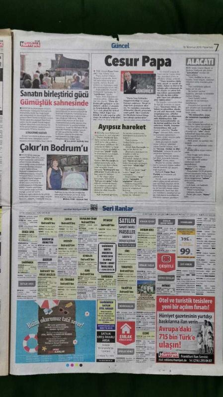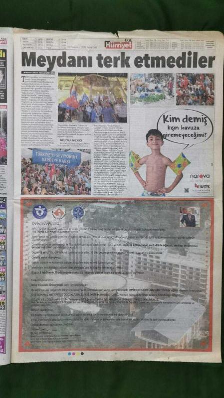 Kitap 2016 yılında yayınlanmıştır. 8 sayfadır. Hürriyet Ege Gazete 18 Temmuz 2016 İzmir Kendine Yakışanı Yaptı,Emine Mihrace Çelen,Daniella Wurbs,Mert Atlı,Erce Kardeşler,Berke Özer,Ali Emre Yanar,Murat Hocaoğlu,Mehmet Erdem Uğurlu,Okan Buruk,Cemil Vatansever,John Chibuike,Tülin Çakır,Gülşen,Fatih Ürek,Hakan Altun,Serkan Kaya,Berkay,Nihat Zeybekçi,Tur İlanları,Seri İlanlar,hurriyetemlak.com Reklamı adlı eser Türkçe dilindedir.