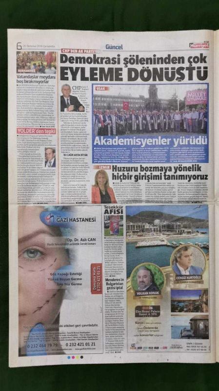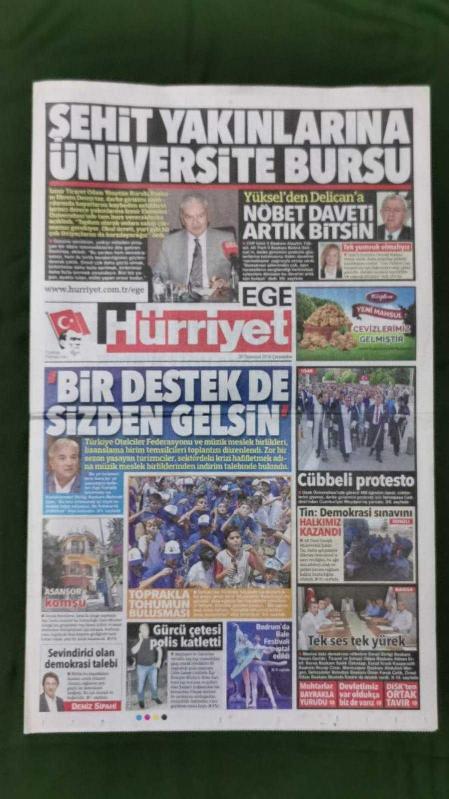 Kitap 2016 yılında yayınlanmıştır. 12 sayfadır. Hürriyet Ege Gazete 20 Temmuz 2016 Şehit Yakınlarına Üniversite Bursu,Ekrem Demirtaş,Alaattin Yüksel,Deniz Sipahi,Harry Novillo,Hakan Turhan,Kenan Karışık,Erman Kılıç,Gökhan Ünal,Alfred Sankoh,John Chibuke,Sibel Can,Hakan Altun,Fatih Ürek,Ziynet Sali,Berkay,Serkan Kaya,Cenk Eren,Soner Olgun,Seri İlanlar,Önce Sağlık İlanları,Tur İlanları,Bornova Koleji - Tuğba Reklamı adlı eser Türkçe dilindedir.