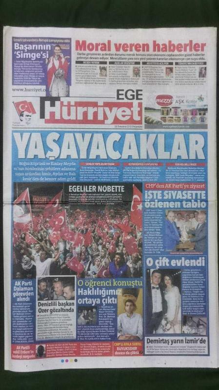 Kitap 2016 yılında yayınlanmıştır. 12 sayfadır. Hürriyet Ege Gazete 28 Temmuz 2016 YAŞAYACAKLAR,Simge Eresayın,Necdet Özer,Mehmet Pakdemirli,Alaattin Yüksel,Oğuz Çetin,Kevin Dillard,Okan Buruk,Darrlyn Monroe,Cengiz Tunçer,Sergen Piçinciol,Emre İşçiler,Necati Yılmaz,Gökhan Taş,Sıla,Yalın,Tamer Mıhçı,Önce Sağlık İlanları,Seri İlanlar,Otel - Gazino İlanları adlı eser Türkçe dilindedir.