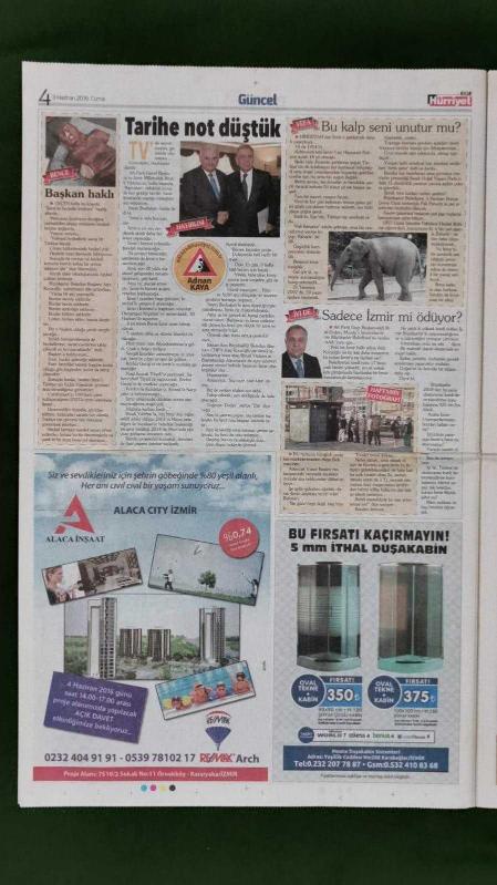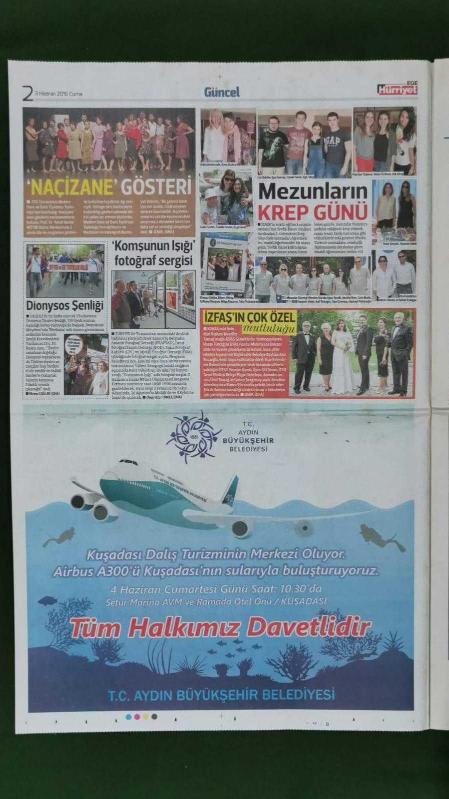 Kitap 2016 yılında yayınlanmıştır. 12 sayfadır. Hürriyet Ege Gazete 3 Haziran 2016 Endoskopi Şampiyonu,İzmirli Doktor Fatih Aslan,Depark "Dalya" Dedi,Soner Tolungüç,Oğuzhan Berber,Mert Hakan Yandaş,Serdar Sabuncu,Muhammet Reis,Leandrinho,Feyyaz Çiftçi,Seri İlanlar,Önce Sağlık İlanları,Sıla Gençoğlu,Binali Yıldırım,Tek Makineyle Patron Oldular,Atiye,Derimod Reklamı,Mezunların Krep Günü,"Naçizane" Gösteri adlı eser Türkçe dilindedir.