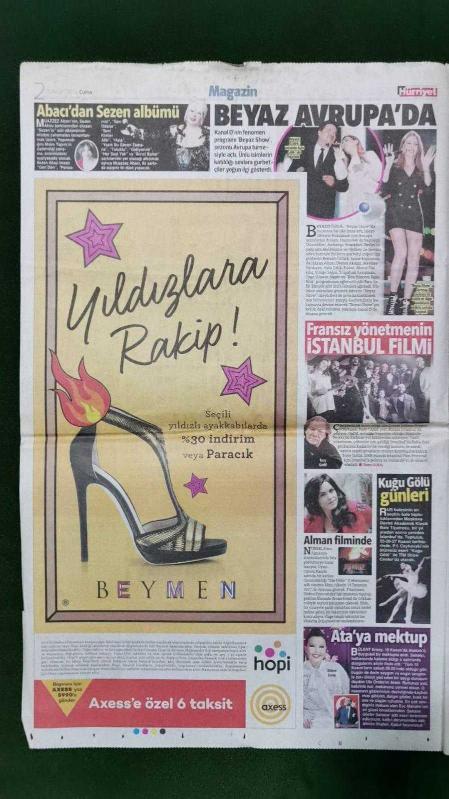 Kitap 2016 yılında yayınlanmıştır. 38 sayfadır. Hürriyet Gazete 11 Kasım 2016 Emlak Oscarları,Ivanka Trump,Berat Albayrak,Nurten Öztürk,Dilan Çiçek Deniz,Melisa Aslı Pamuk,Simge Sağın,Aziz Torun,Mehmet Özhaseki,Avni Çelik,Recep Tayyip Erdoğan,Mehmet Şimşek,Donald Trump,Drake Burnette,Yasin Öztekin,Robert Jordan,Arda Turan,Fatih Terim,Metin Albayrak,Şenol Güneş,Abdullah Avcı,Jürgen Kloop,Kevin Durant,Lionel Messi,Ahmet Ercanlar,Kadir Topbaş,Aydın Doğan,Ahmet Misbah Demircan,Vuslat Doğan Sabancı,Çiğdem Karaarslan,Nursel Köse,Bülent Ersoy,Tony Gatlif,Serenay Sarıkaya,Ayla Çelik,Beyazıt Öztürk,Muazzez Abacı,Tur İlanları,Mokka X - 5.Levent - Beymen - Kipa Market Reklamı adlı eser Türkçe dilindedir.