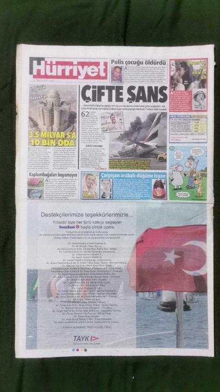 Kitap 2016 yılında yayınlanmıştır. 38 sayfadır. Hürriyet Gazete 12 Ağustos 2016 Necdet Özel,Antonija Mizura Sandric,Fikret Bila,Hakan Şükür,Kloe Salt,Göksel Gümüşdağ,Loz Hollins,Malia Obama,Barack Obama,Tolga Ciğerci,Guus Hiddink,Martin Skrtel,Usain Bolt,Kulupler Birliği Toplantısı,Robin Van Persie,Simon Kjaer,Fernandao,Muharrem Usta,Işıl Alben,Süleyman Seba,Hüseyin Mican,Uğur Erdener,Gioachino Rossini,Nurseli İdiz,Burak Özçivit,Neslihan Atagül,Sıla,Nükhet Duru,Soner Olgun,Deniz Seki,Seri İlanlar,Titanic Hotels - ETS Tur Reklamı,İsmet Yılmaz,Binali Yıldırım,Mehmet Özhaseki,Ahmet Hakan'a Yazdığım Mektup-Ali Ağaoğlu adlı eser Türkçe dilindedir.