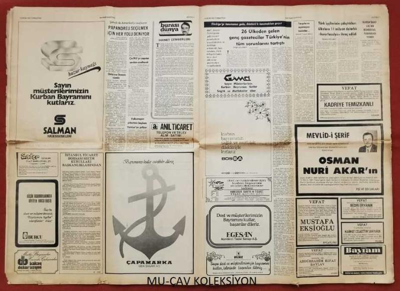 Boyutu: Boyu:58 Eni:42 Gazetede yıpranma,sararma,kupon kesiği ve yırtılma zamana bağlı olarak görülebilir
