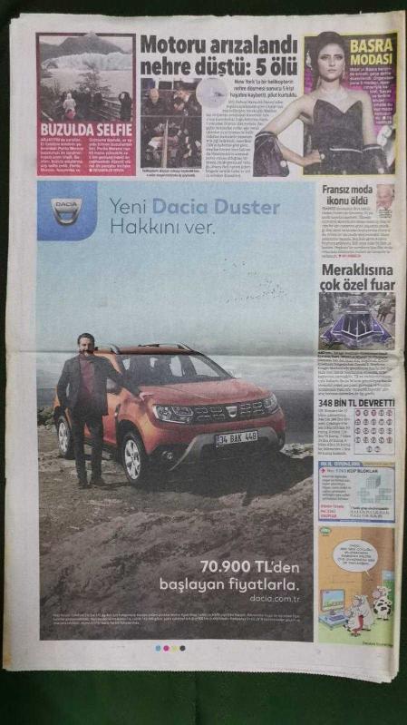 Kitap 2018 yılında yayınlanmıştır. 38 sayfadır. Hürriyet Gazete 13 Mart 2018 38 Bin Feet'te Ne Oldu,Mina Başaran,Murat Gezer,İlker Başbuğ,Johns Hopkins,Volkan Demirel,Bülent Yıldırım,Sinan Gümüş,Anderson Talisca,Okay Yokuşlu,Şenol Güneş,Çağan Irmak,Çetin Tekindor,Kenan İmirzalıoğlu,Atsız Karaduman,Kadir İnanır,Arda Turan,Recep Tayyip Erdoğan,Aslıhan Doğan Turan,Emine Erdoğan,Yiğit Özşener Dacia Reklamı adlı eser Türkçe dilindedir.