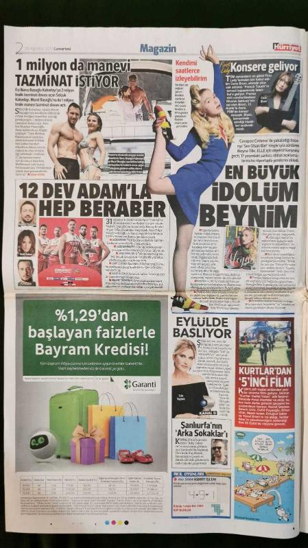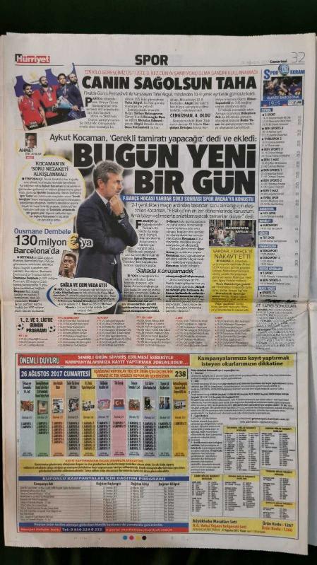 Kitap 2017 yılında yayınlanmıştır. 36 sayfadır. Hürriyet Gazete 26 Ağustos 2017 12 Dev Adamla Hep Beraber,Hidayet Türkoğlu,Seda Bakan,Sarp Apak,Kadir Doğulu,Sarp Levendoğlu,Burcu Başoğlu Kabadayı,Selçuk Kabadayı,Aleyna Tilki,Carla Bruni,Şule Zeybek,Necati Şaşmaz,Sinem Uslu,Şevket Çoruh,Manş'ta Bir Cesur Yürek,Yüzücü Bengisu Avcı,Usta Spiker Mesut Mertcan Hayatını Kaybetti,Nejat Gülen,Fenerbahçe İstenenler Ve İstenmeyenler Diye Bölünmez,Aykut Kocaman,Volkan Demirel,Robin Van Persie,Josef,Mehmet Topal,Canın Sağolsun Taha,Taha Akgül,Ousmane Dembele,Neymar,Çağla Büyükakçay,Cem İlkel,Oğuzhan Yok Arda Ve Emre Döndü,Arda Turan,Emre Belözoğlu,Mircea Lucescu,Oğuzhan Özyakup,Olcay Şahan,Ahmet Çalık,Hasan Ali Kaldırım,Aslan 3'ten Aşağı Atmıyor,Cenk Ergün,Bafetimbi Gomis,Tolga Ciğerci,Şimdi De Aykut Kocaman Linç Ediliyor,Igor Tudor,Kiğılı Reklam,Ford Reklam,Ets-Tur Reklam,Garanti Banka Reklam,Bmw,Hyundai,Suzuki Reklam,Seri İlanlar,Taziye İlanları adlı eser Türkçe dilindedir.